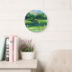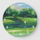 Une aquarelle originale d'Anne Ormsby d'un vert de golf orne cette belle horloge murale.
