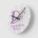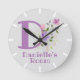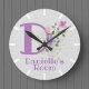 Le design présente Monogram & Name avec Fleurs de chaque côté dans un style pastel couleur eau. Horloge De Chambre Enfants. L'exemple s'appelle Danielle. Changez le nom comme souhaité pour toute personne ayant un nom commençant par D.