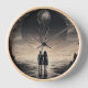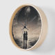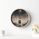 Step into a dreamlike world with this "Ethereal Journey" wall clock, where surréalistes m meets timeless elegance. The design feh a mesmerizing scene of two silhouetted figures standing together, gazing into a vast, otherworldly landscape Above them, a mysterious, floating jellyfish-like entity hovers in a cosmic sky, adding a touch of fantasy and intrigue. The monochromatic tones and intricate details make this clock not a functional piece, but a captivating work of art that enhance any space. Perfect for those who appreciate surrealist art, science fiction themes, or simply want to add a unique, artistic flair to their home or office. Let time kleaway as you lose yourself in this extraordinary scene !