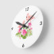 Cette horloge murale de forme ronde est montrée avec une jolie impression d'art flamingo rose. Customisez cet objet ou achetez tel quel. Image stock