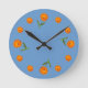 Les fleurs de Calendula sont disposées comme positions numériques sur cette horloge. Les fleurs d'oranges à 12, 3, 6 et 9 ont des tiges et des feuilles pointant vers le centre, les autres "nombres" sont légèrement plus petits, sans tiges. Customisez/Modifiez pour modifier la couleur de l'arrière - plan à votre goût.