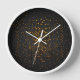 Horloge fond noir avec des petits cercles dorés, dans la simplicité