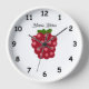 Fruit de framboise rouge coutume horloge murale de cuisine. Cute cuisine d'été design. Personnalisez avec un nom personnalisé ou une citation drôle. Cadeau d'anniversaire cool pour amis, famille etc.