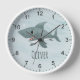 Ce design d'horloge pour enfants mignon et moderne présente un dessin animé sur le requin bleu, avec des bulles et des vagues. L'horloge peut être personnalisée avec votre nom de garçon. Le graffiti sur le thème de l’océan à la chambre d’un enfant ou à la garderie!