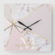 Grille Rose Gold Blush Géométrique Monogrammé Grande horloge murale Carré personnalisée avec votre initiale et votre nom. L'horloge fait partie d'une collection. Year peut également être édité.