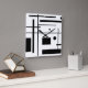 Cette horloge faite sur commande a été créée utilisant une de mes copies d'art des formes géométriques noires sur un arrière - plan de blanc. Créé par l'artiste Kirt Tisdale.