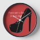 Cette conception amusante comporte un talon noir sur un arrière - plan rouge, avec un texte qui dit : Je n'ai jamais rencontré une chaussure que je n'aimais pas. Le texte peut facilement être modifié ou supprimé. Customisez facilement la couleur arrière - plan en cliquant sur Customiser, Modifier et Arrière - plan.
