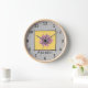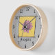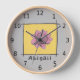 C'est une horloge magnifiquement conçue que vous pouvez personnaliser avec votre nom. Il comporte un stylo et un dessin à l'encre d'une rose rose rose. Le rose a un arrière - plan jaune à l'intérieur d'une bordure de ligne noire. La couleur arrière - plan est gris pâle, et l'horloge a des chiffres noirs avec un cadre en bois clair. L'oeuvre est originale, et disponible uniquement dans l'Art d'être Beth.