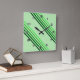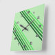 Bandes vertes dans cinq tons différents, foncé à clair, de bas en haut. Deux séries de rayures sont placées en diagonale aux angles opposés. Les chiffres ont un aspect argenté à l'ombre métallique. Arrière - plan vert très pâle.