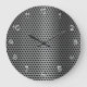 Horloge de décoration murale Masculine avec arrière - plan en métal simulé moderne conçu pour ressembler à des trous dans la surface métallique avec des chiffres qui se démarquent sur la face de l'horloge. Conçu pour une chambre pour hommes, un mur de bureau dans une entreprise automobile, ou une horloge de cuisine dans un environnement de cuisine ultra moderne.