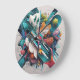 Adorez votre espace avec cette horloge murale vibrante et complexe, qui présente un magnifique art numérique 3D. Le design présente une explosion de formes abstraites et de formes organiques, mélangeant des motifs naturels avec des éléments futuristes. La riche palette de couleurs et de composition dynamique crée un sens du mouvement et de la sophistication, ce qui en fait une pièce parfaite pour tout intérieur moderne.