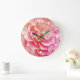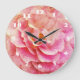 Horloge murale acrylique en fleurs de rose rose.