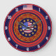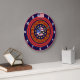 Parfait pour les amateurs d'Americana ! Doté d'un superbe logo central de carte des États-Unis entouré de treize étoiles d'or, d'élégants motifs d'or, et surmonté d'un texte en or des États-Unis. Autour de cela, des anneaux rouges et bleus encerclent avec des nombres blancs. A 12 heures, le drapeau américain est solidement assis. Une horloge élégante qui impressionne tous les fans des Etats-Unis d'Amérique. Entièrement personnalisable pour ajouter des noms, des images et plus encore. Bon appétit !