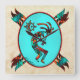 C'est une horloge murale Kokopelli Sud-Ouest unique "One of a Kind"! Il comprend un Kokopelli jouant de la Flûte et dansant sous le soleil sur un Arrière - plan Turquoise...Entouré de la Frontière Turquoise, Noire et Orange! Design D'Art Original Par L'Artiste Kerry Miller.