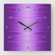 Cette horloge carré brillante dans les tons violet, violet et lavande égayera le mur de toute pièce où elle est exposée.