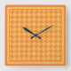 Une horloge murale élégante et carrée, avec partout un motif de contrôle à deux nuances de mandarine fortement à la mode.