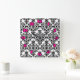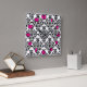 Joli motif damassé en noir et blanc avec des chiffres rose chaud. Cette horloge murale est si belle ! Accrochez-le à la bibliothèque, à la tanière, à la maison de plage ou au bureau. Cette horloge ferait un cadeau unique pour le chauffage domestique ou le réchauffement de la mer (ou le réchauffement de la mer). Disponible en deux tailles d'horloge à 24h/24, ou une horloge carré. Copyright Scarribaby Design.