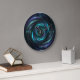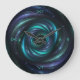 Horloge murale faite sur commande avec l'art numérique comportant une spirale d'Archimède d'imaginaire sur l'aqua et le pourpre. Les inscriptions d'heure sont les chiffres romains et elles peuvent être changées en chiffres arabes ou texte.