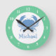 Horloge murale crabe bleu et nom de bébé. Idée de cadeau pour la petite chambre pour enfants. Décor de pépinière bleu et vert avec nom personnalisé. dessin animé d'animaux de vie marine.