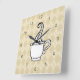 Le Jacquard beige et la tasse de café vapeur donnent à cette horloge murale un style rétro. Le design est issu de l'art original.