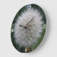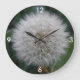 Cette horloge impressionnante présente une belle photo d'une fleur de Dandelion semant. La photo a été prise en utilisant la macro photographie pour un résultat détaillé. Vous pouvez voir toutes les graines peluches blanches individuelles prêtes à exploser au vent.