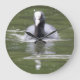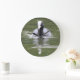 Cette horloge impressionnante présente une photo d'un Coot nageant sur une rivière marémotrice. Ce bel oiseau britannique est noir avec un bec blanc et un marquage sur la tête. Il s'agit d'une espèce commune, mais elle peut parfois être difficile à voir, car elle est plus pâle que d'autres oiseaux aquatiques.