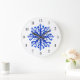 Horloge murale de la maison d'hiver Flocon de neige couleur bleu aquarelle, style rétro magnifique.