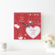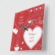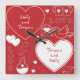 Une horloge murale acrylique conçue avec un motif de valentine de deux noms, blanc sur le rouge. Customisez l'horloge murale avec vos noms de coeur, couleur d'arrière - plan, entre d'autres options.
