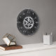Sembler frais horloge murale noire et argentée de ton avec une sensation métallique rustique. Fait dans un regard noir de grillage, avec les nombres romains et les vitesses de ton argenté, cette horloge murale unique est tout prête à customiser, avec votre propre texte. Grande horloge d'accent de pièce.