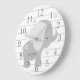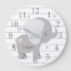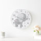 L'horloge mural mûre présente un bébé éléphant en blanc et gris, un élément de décoration parfait pour la pépinière. Personnalisez-vous avec le nom du bébé ou son message personnel. Un cadeau parfait avec un but.