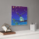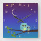 Un hibou bouffe avec il est petit sous un ciel crépusculaire d'étoiles scintillantes. Oeuvre originale de la ménagerie de Night Owl, 2010.