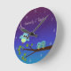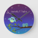 Deux bébés hiboux s'agglutinent et s'installent pour dormir sous un ciel crépusculaire d'étoiles scintillantes tandis que maman hiboux les regarde. Facile à personnaliser ou à effacer le texte pour les illustrations uniquement. Cette conception fonctionne pour les horloges de taille moyenne et grande. Oeuvre originale de la ménagerie de Night Owl, 2010.