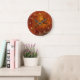 Horloge murale steampunk couleur rouille avec colibris mécaniques steampunk en noir et rouille rouge avec cogs arrière - plan
