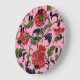 Brillant art floral chinois sur un arrière - plan rose avec des chiffres noirs. Cette horloge ferait un cadeau unique pour le chauffage domestique ou le réchauffement de la mer (ou le réchauffement de la mer). Disponible en deux tailles d'horloge à 24h/24, ou une horloge carré. Copyright Scarribaby Design.