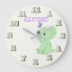 Ajoutez un nom et un titre à cette horloge murale de bébé dinosaure mignon (de la période jurassique ou de l'âge de pierre). Idéal pour une nurserie sur le thème des dinosaures pour garçon ou fille, chambre de jeune enfant. Les couleurs sont gris subtil et vert turquoise avec du violet. Numéros à l'aspect âge de pierre.
