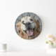 Laissez un joyeux récupérateur d'or vous apporter un sourire au visage avec cette horloge murale joyeuse! Le design comporte des chiffres audacieux et faciles à lire et des empreintes de pattes noirs qui marquent chaque heure.