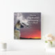 Cette horloge murale montre une citation d'un auteur inconnu qui dit : "La paix voit le coucher du soleil et sait qui remercier." Cette horloge murale montre mon beau berger allemand en regardant vers un coucher de soleil incroyable en Californie riche en couleurs rouge, orange et jaune. Les collines ondulées sont presque noires et le ciel est rempli de nuages d'orages foncés et clairs.