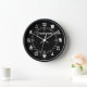 Une horloge murale élégante et simple d'inspiration d'échecs avec des pièces graphiques représentant les marqueurs d'heure et le motif vérificateur indiquant les minutes sur un arrière - plan noir propre. Le texte personnalisable fait de cette pièce de temps une grande idée cadeau personnalisée pour les amateurs d'échecs.