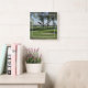 Cette horloge avec l'image d'un beau vert de golf vu par une fenêtre va rehausser n'importe quelle pièce ou mur de bureau. Customisez facilement avec le texte ou profitez de la vue.