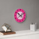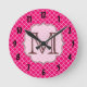 Monogramme à huile à quarterfoil rose chaud Monogramme à lattes Motif à tissu personnalisé initial Horloge murale