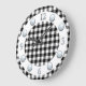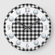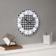 Ce design allie le traditionnel (chèque motif) et le moderne (face à horloge argentée). L'arrière - plan est un chèque en noir et blanc, avec une bague blanche. Les chiffres argentés sur le dessus de l'anneau sont des nombres argentés pour les douze, trois, six et neuf. Les numéros restants sont indiqués par des points d'argent.