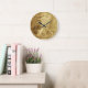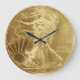 Horloges en médaille d'or avec belle photo closeup d'or dollar américain argent avec une finition or sur la face de l'horloge. Grande décoration murale design horloge pour votre cuisine, salle de bain, ou n'importe quelle chambre dans votre maison vous voulez ajouter quelque chose d'unique liée à l'argent, numismatique, or, ou monnaie. Conçu pour les collecteurs de pièces ou toute personne impliquée dans le financement et l'argent.
