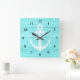 Horloge murale marine | ancre de bateau et panneaux de bois. Décor bleu turquoise et blanc avec planches en bois et ancre marine météo. Une idée de cadeau maritime. Décor des chambres à thème plage / décoration de la maison. Grande carré ou petite taille ronde.