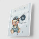 Créez une horloge murale spéciale avec votre nom de famille et monogramme. Caractéristiques d'une ambiance denim décontractée. Couleurs bleu doux, beige et blanc pour un attrait relaxant et cosy. Fait partie de la collection de design Bear Jean Baby. Utilisez le modèle pour personnaliser.