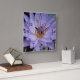 Cette horloge murale faite sur commande a une fleur pourpre de nénuphar avec une abeille là-dessus.