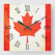 Un style ancien unique horloge canadienne à drapeau en feuille d'érable dans les tons rouge et blanc. Conçu en utilisant le drapeau du Canada et en ajoutant un peu de traitement vintage. Produit par Sarah Trett. Ça aurait l'air super dans une chambre patriotique, un salon ou un bar.