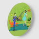 Cette horloge murale ronde de couples modernes de la moitié du siècle ressemble à une scène hors d'une comédie romantique. Le style des années 1960, caractéristiques de conception minimalistes d'art un couple attrayant de bande dessinée appréciant égaliser romantique à la maison. La salle sophistiquée comporte en évidence un mur en pierre vert avec un feu d'hurlement dans la cheminée. L'ameublement dans la chambre inclut une orange, la chaise longue avec le tabouret assorti, un rouge, l'horloge murale de starburst, un jaune, l'appareil d'éclairage de spoutnik, et une table latérale orange, qui est à la maison à un vert, tourne-disque portatif. Sur le plancher près de la table d'extrémité, un disque vinyle peut être pousser vu hors d'une couverture kitschy d'album. Au centre du plancher vert, il y a une grande, rectangulaire, turquoise couverture. Au milieu de la scène, nous avons un couple très sophistiqué. Il y a un homme suave dans un costume de bleu royal, une chemise blanche et une cravate d'arc bleue. L'homme grand, sombre et bel regarde fixement son beau compagnon. L'élégant, femme d'une chevelure de corbeau porte une robe d'aqua de flouncy. Ils sont chaque participation par verre en cristal de martini avec une olive de flottement. À la votre ! Voici à égaliser parfait à la maison !