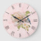 Beau bouquet floral rose aquarelle avec colibri bleu et arrière - plan rose et blanc passé. Face d'horloge numérique romaine