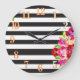 Horloge murale rose florale noire et blanche