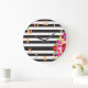 Horloge murale à rayures rose et vert noir et blanc